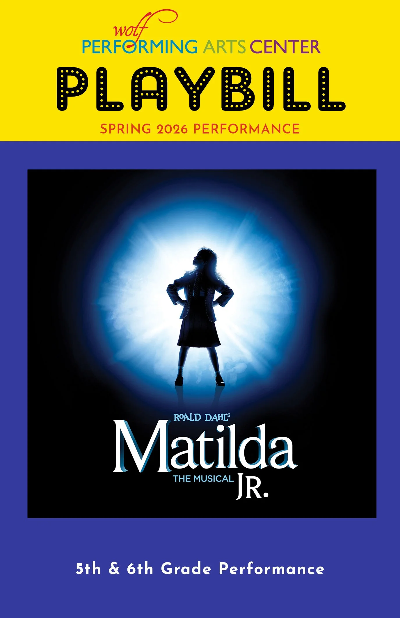 All the must-haves for your performer are just a click away! Ads are due March 23rdPurchase a Playbill Ad Here Quick View Matilda the Musical T-shirt $25.00 Quick View Cast Posters - 5th & 6th Grade $35.00 Quick View Digital Show Photos $25.00 Tickets will be available online mid-March Register for the 5th & 6th Grade Spring PerformanceLearn More